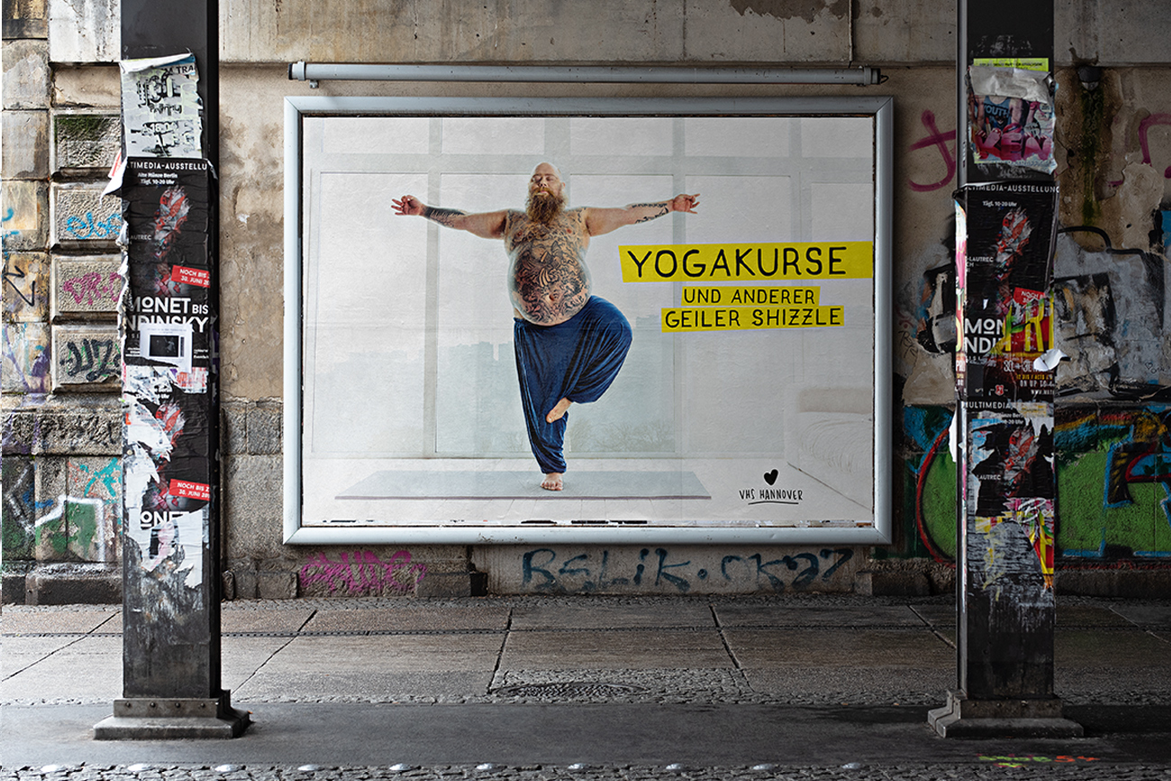 Promotionkampagne für die VHS HANNOVER: Von Postkarten, Print- & Web Anzeigen bis zum Großformat.